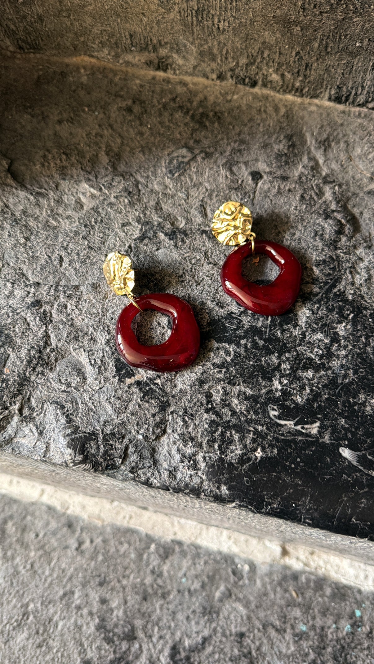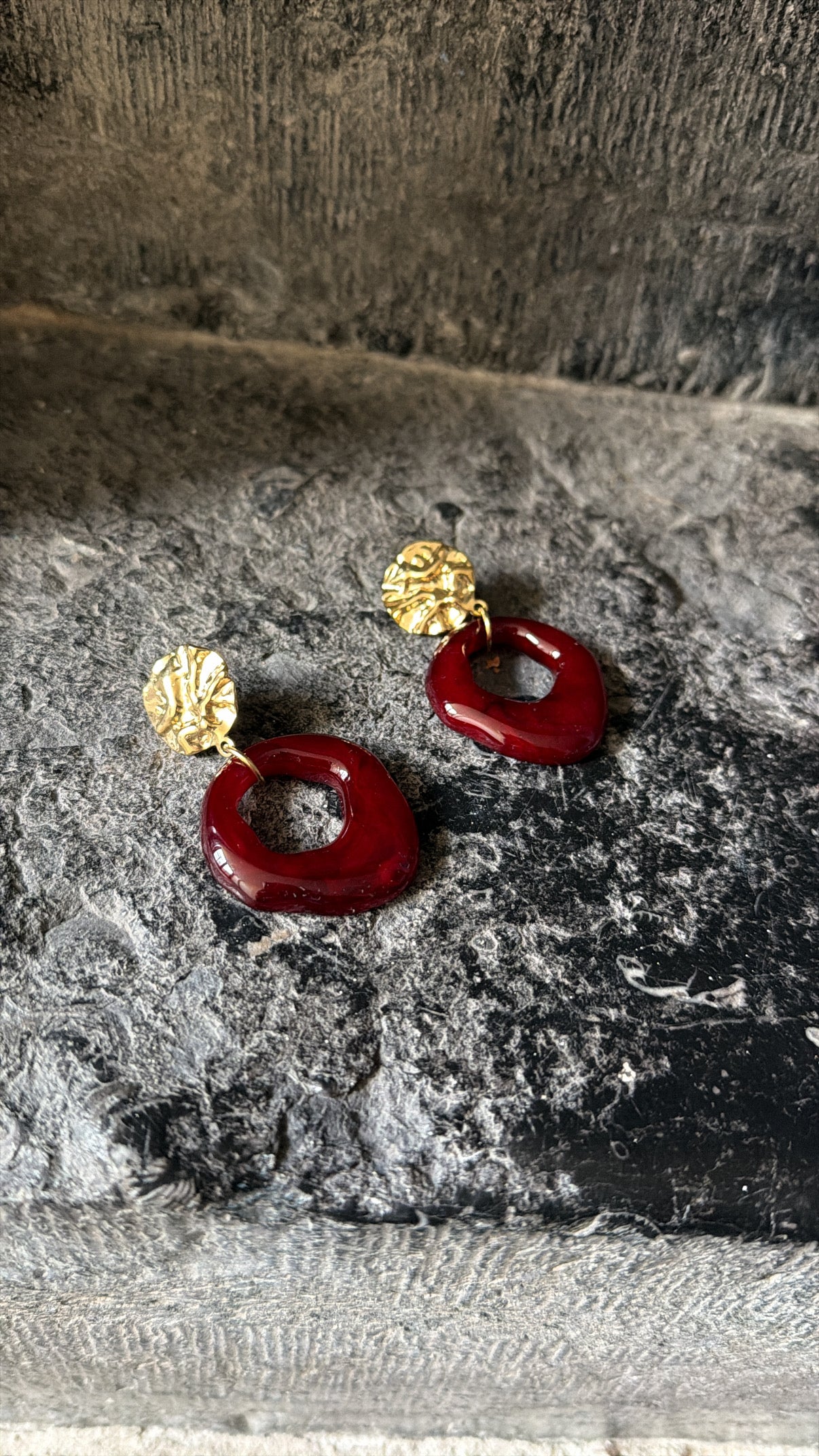 BO en résine bordeaux et acier inoxydable.