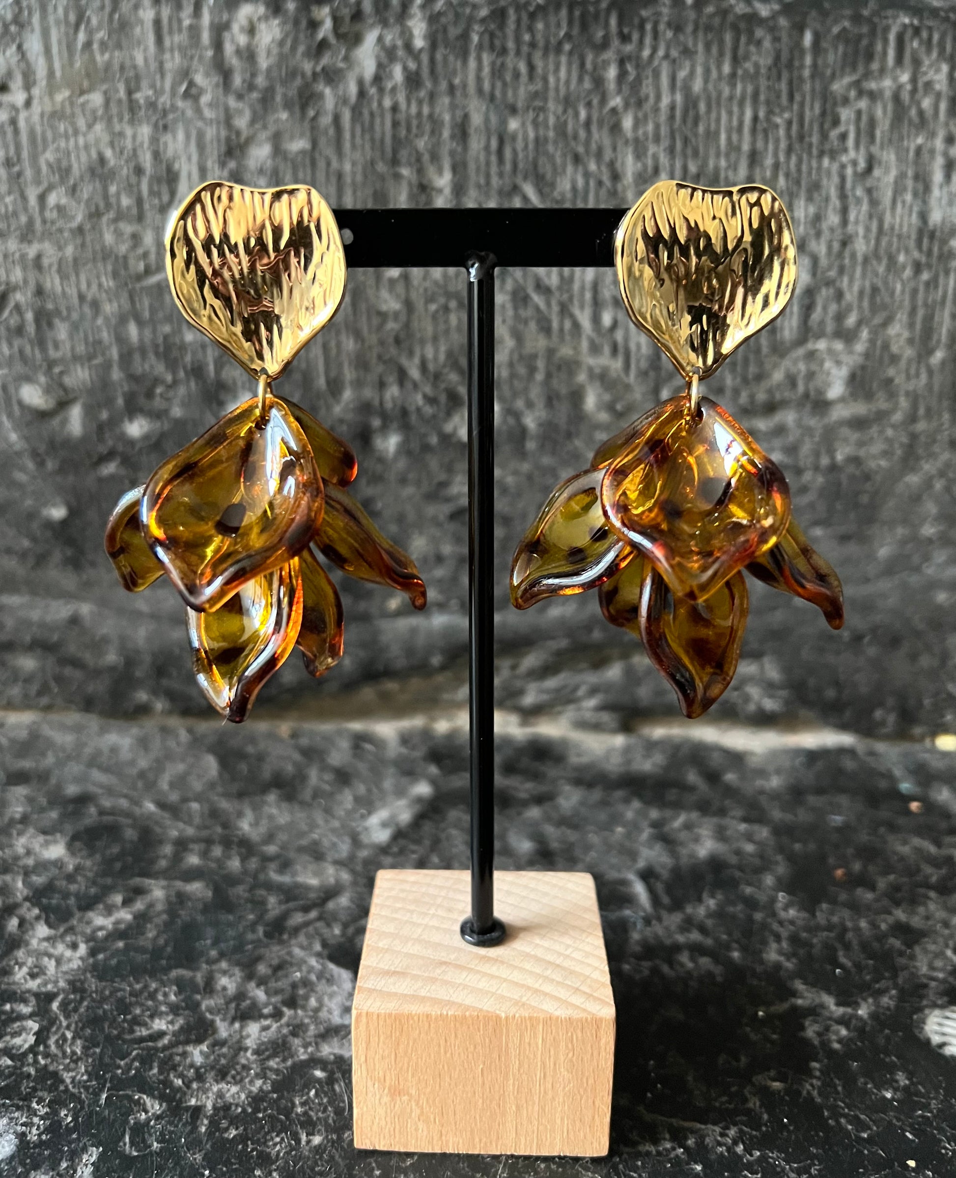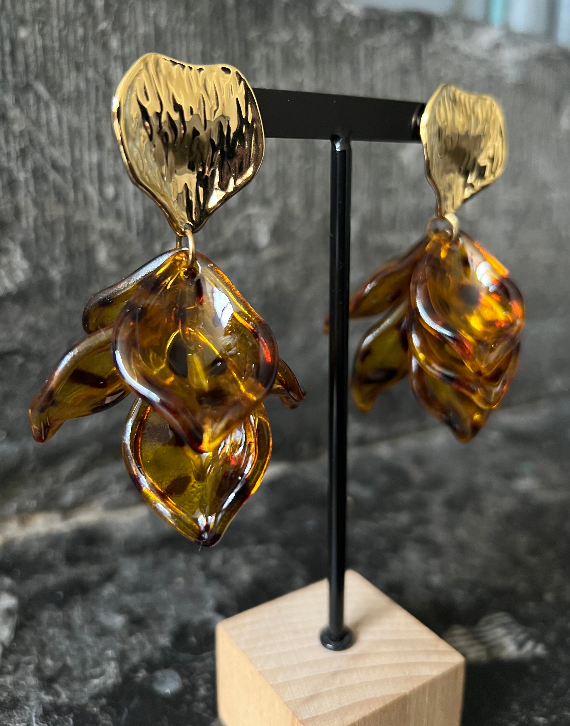 Boucles d’oreilles avec une attache en acier inoxydable et des feuilles en résine.