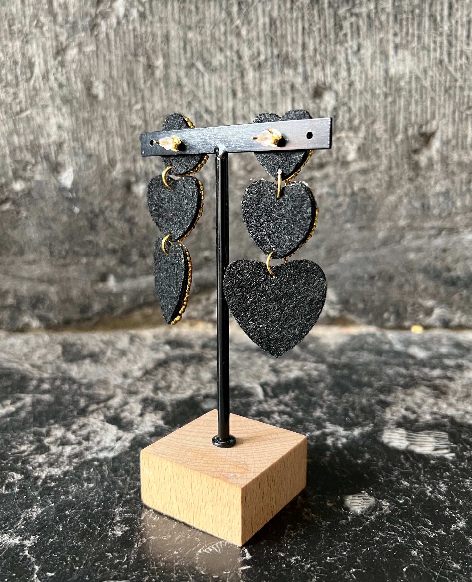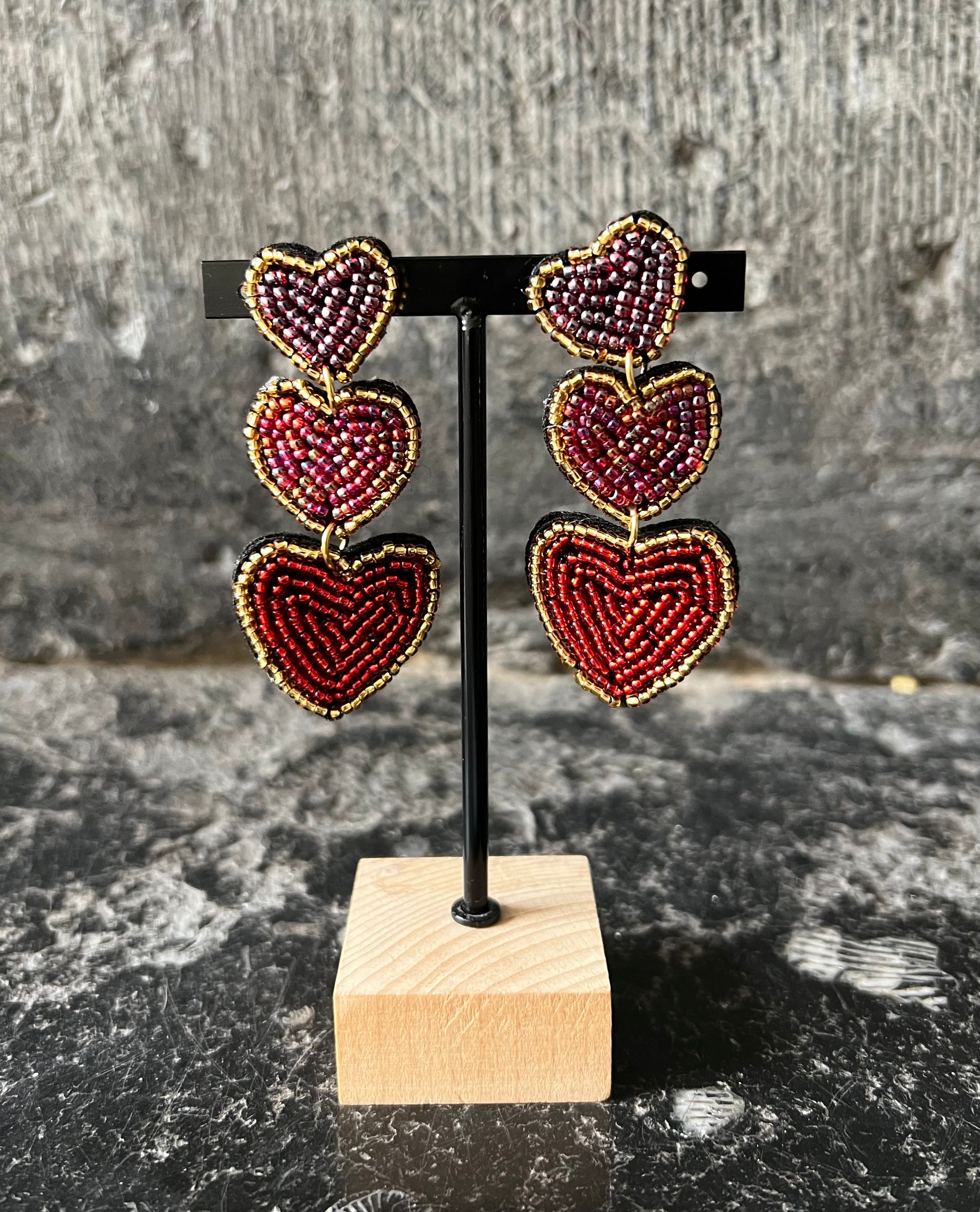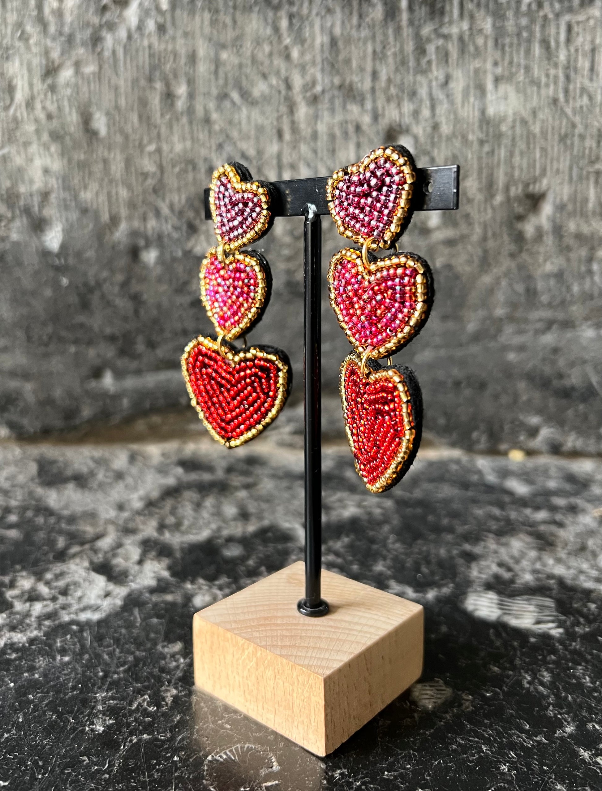Boucles d’oreilles coeurs avec des petites perles de différentes couleurs.
