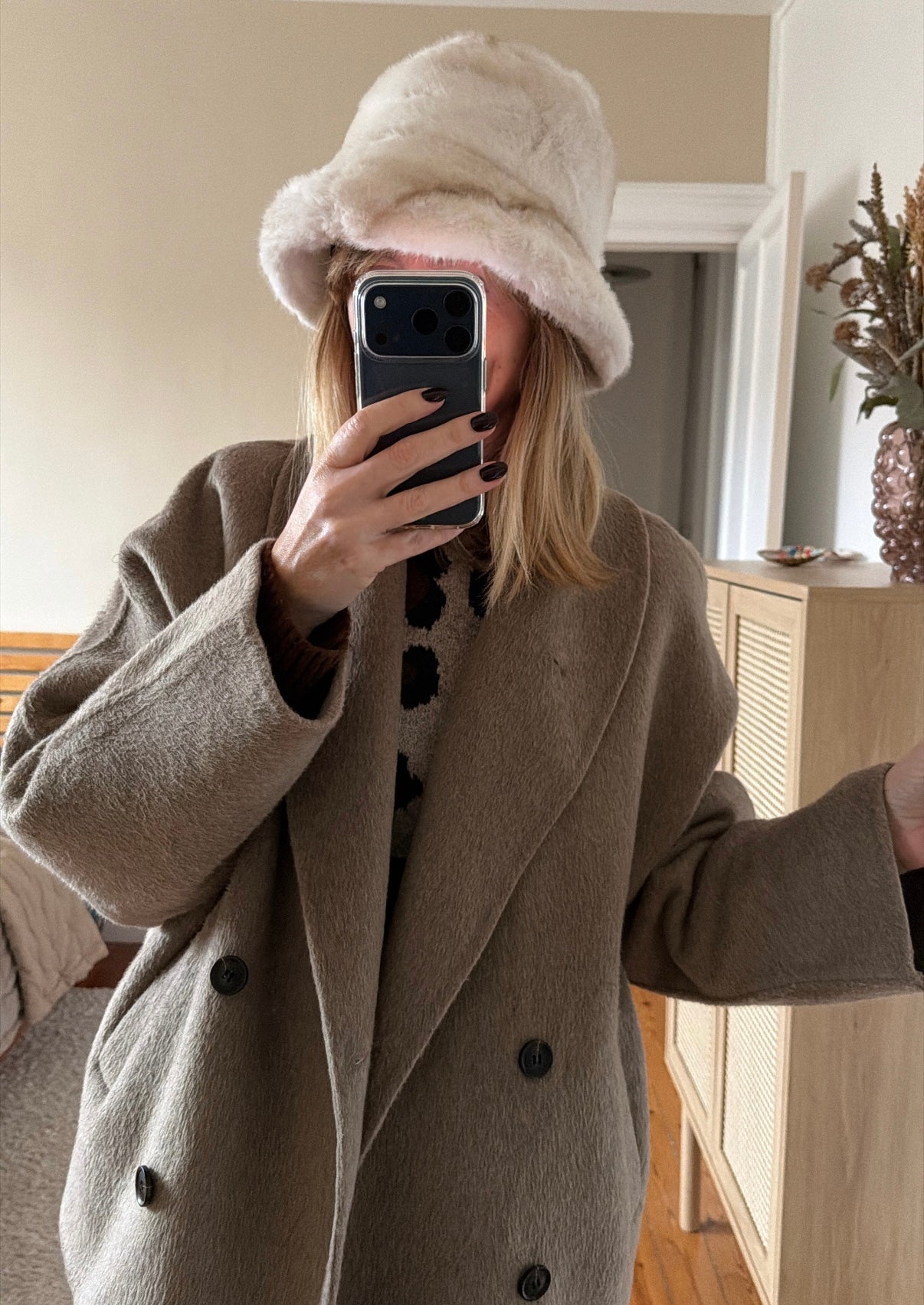Bob en fourrure avec un lien pour resserrer à l’intérieur.