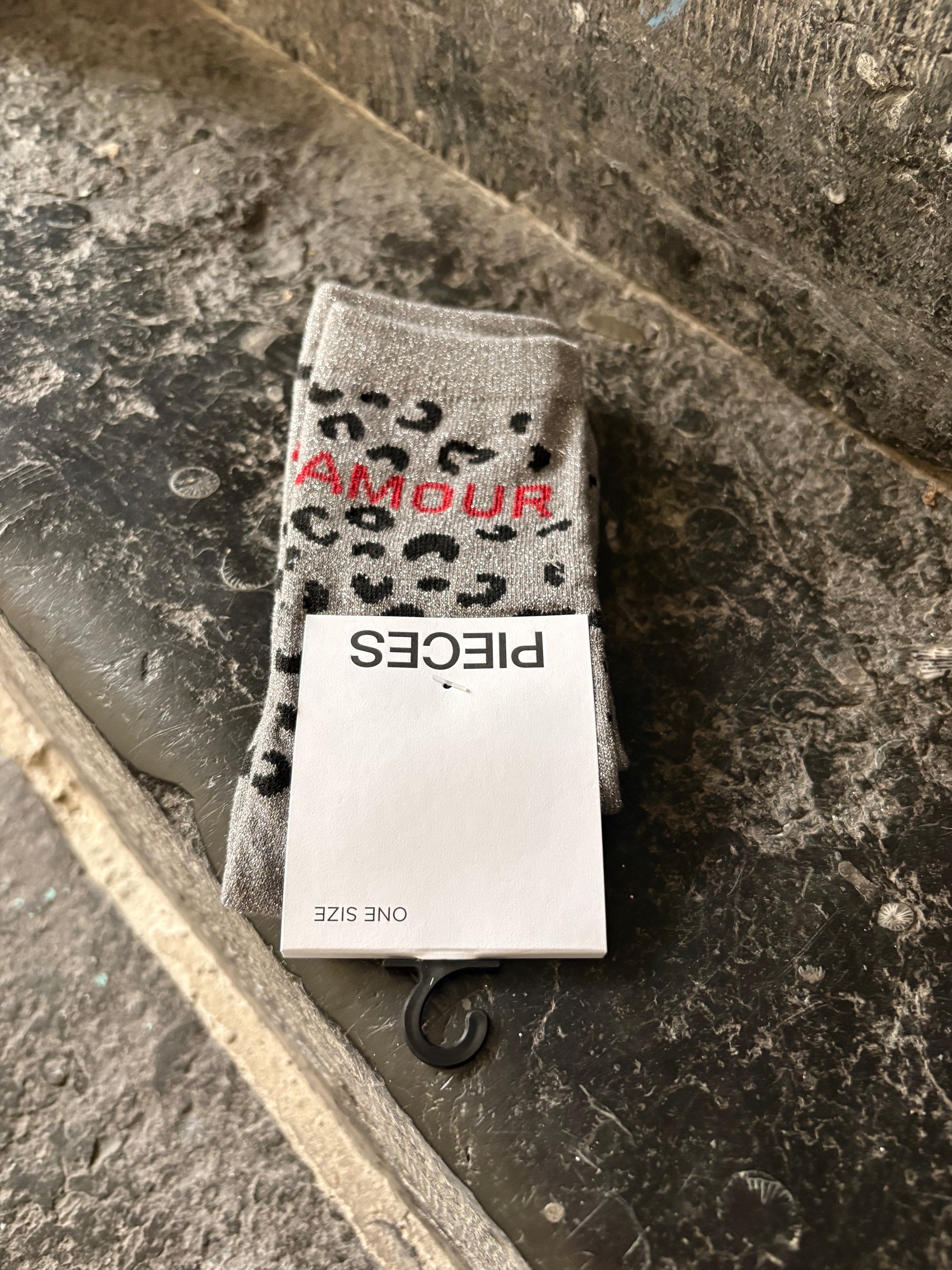 Chaussettes léopard structurée gris avec des paillettes argentées.