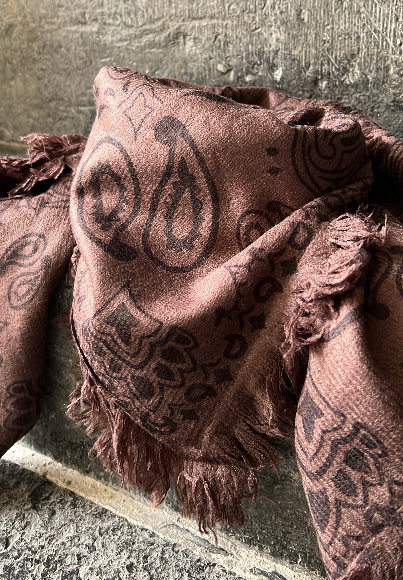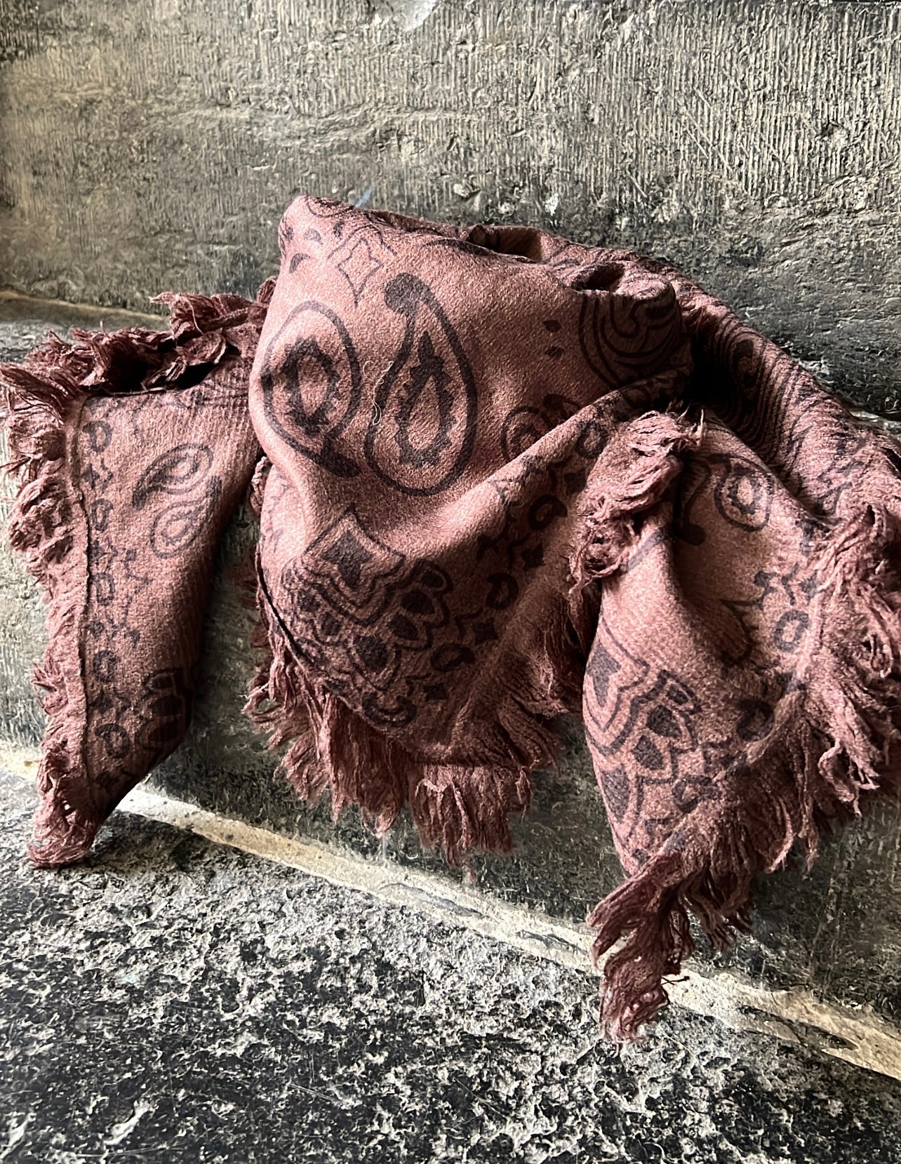 Écharpe carrée toute douce imprimé bandana, avec détail petites franges sur les côtés .