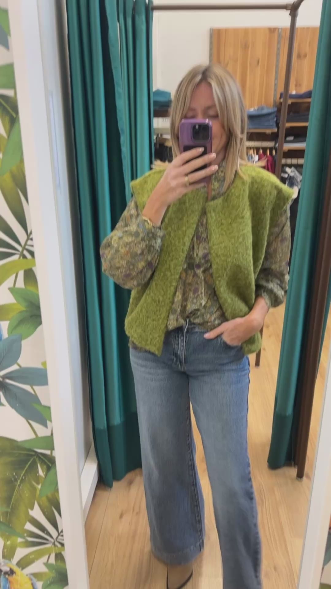 Gilet sans manches effet laine bouillie, détail épaule marquée. Poche de chaque côté .