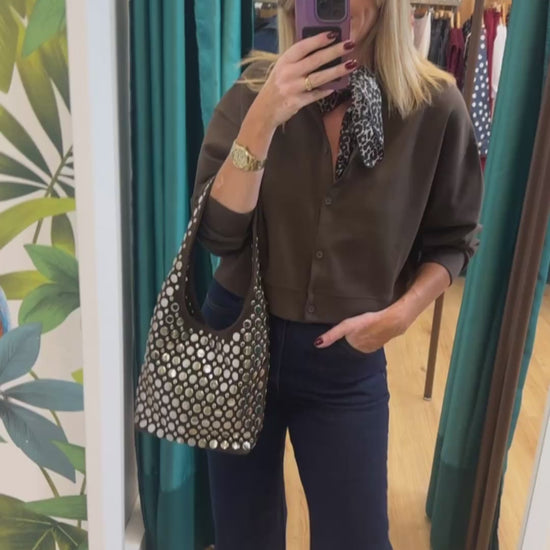 Le modèle fait un 38/40 pour 1m74 et porte la taille 40.
