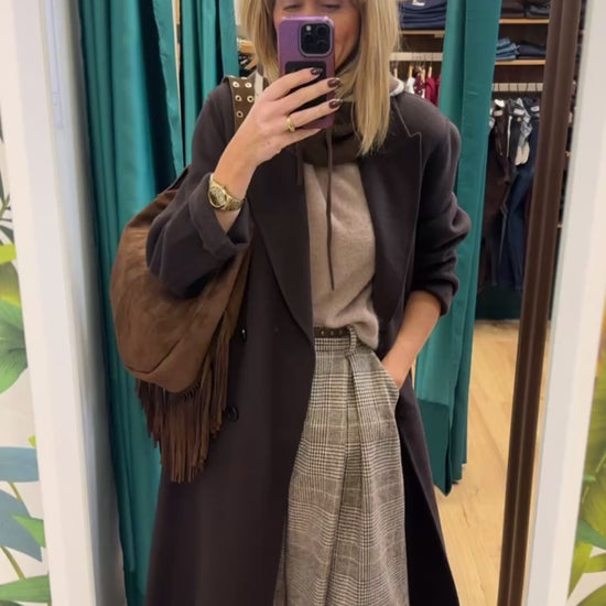 Pantalon style jupe culotte en tissus épais prince de galles. Poches de chaque côté. La taille est élastiquée dans le dos. La ceinture en simili est vendue avec le pantalon.