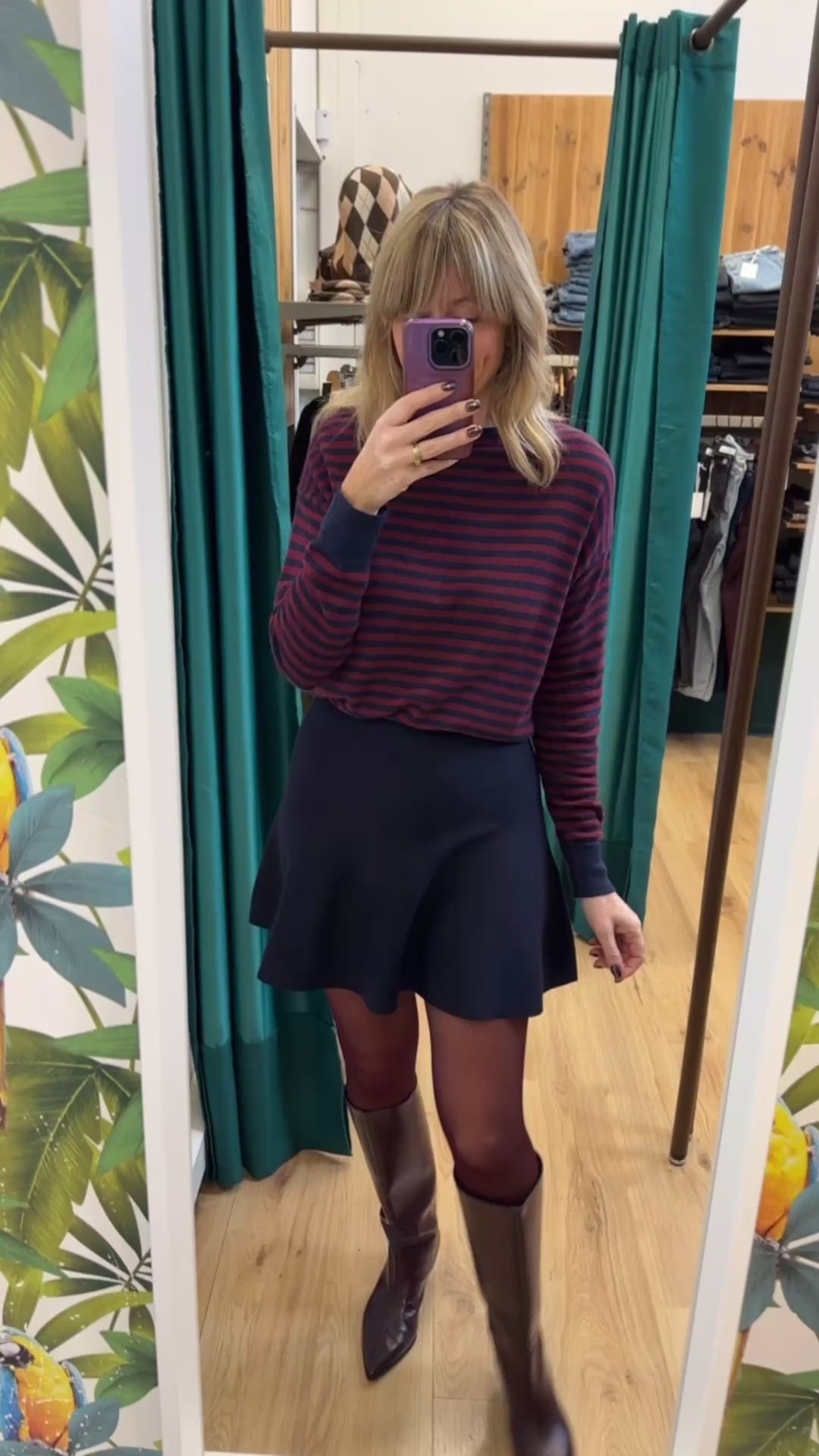 - Portez la Jupe Livia avec un sous-pull en dentelle pour un look chic et féminin.