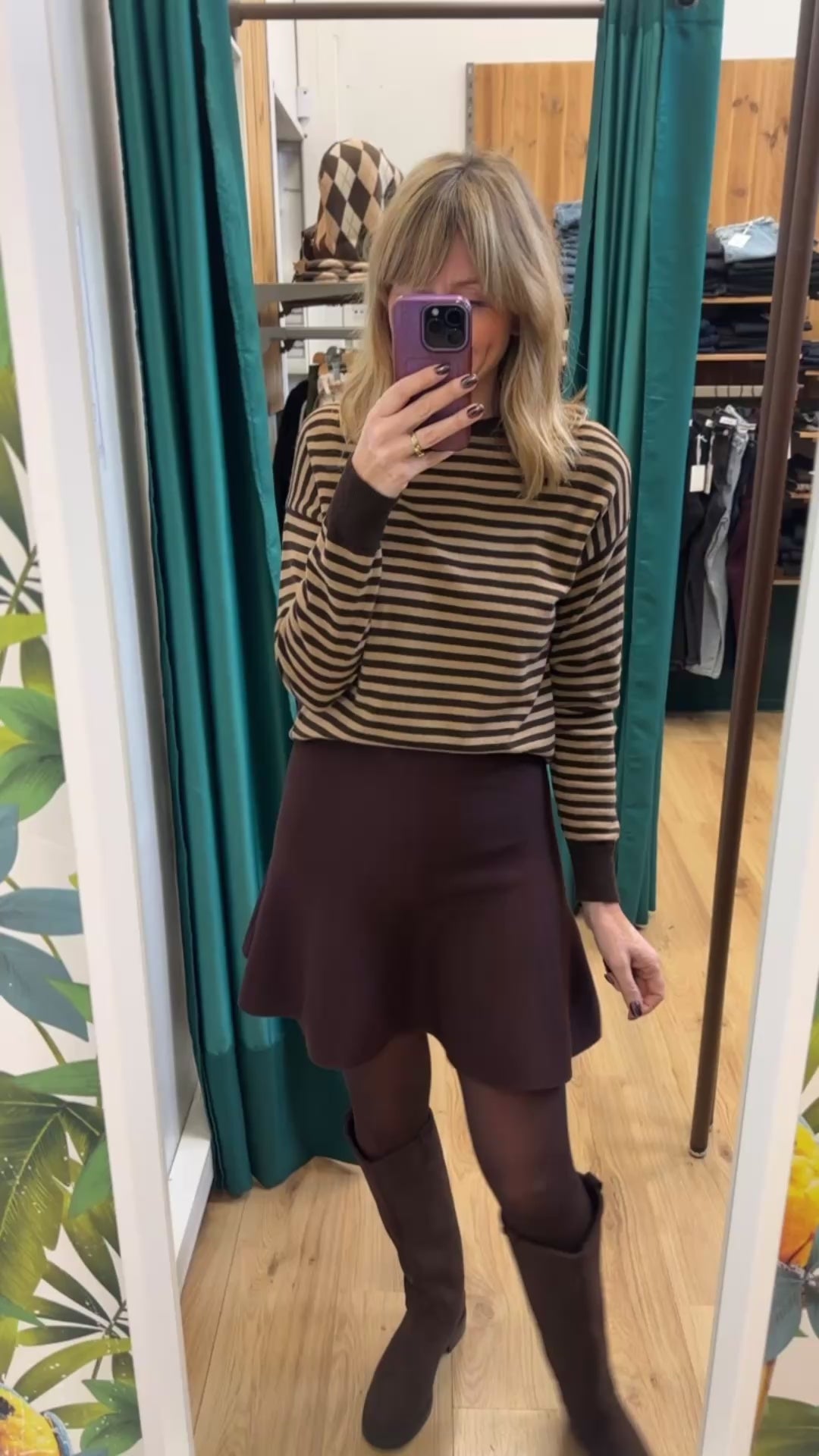- Portez la Jupe Livia avec un sous-pull en dentelle pour un look chic et féminin.
