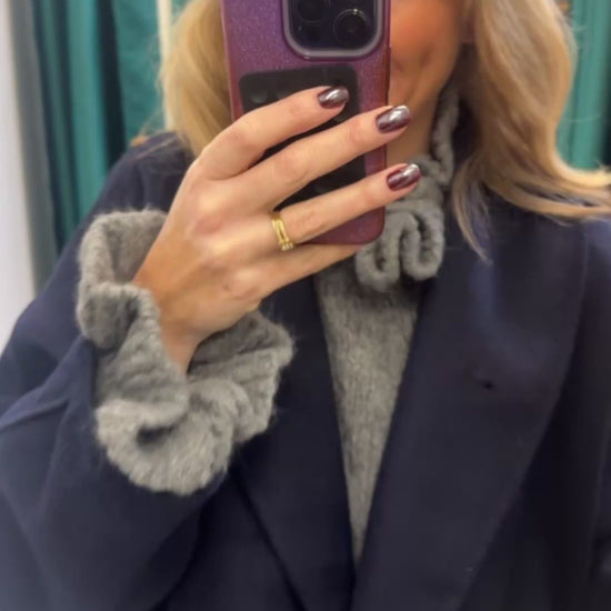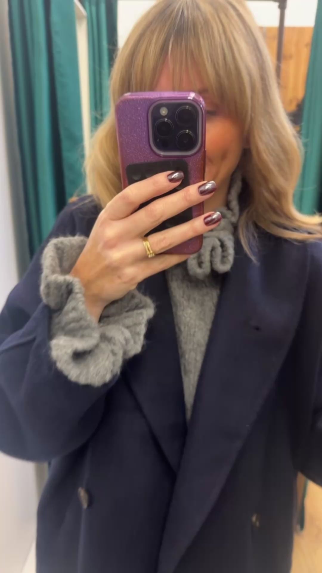 Manteau coupe oversize bleu marine. Détail boutons croisés, poches de chaque côté. Col châle. La matière est très agréable à porter et légère.