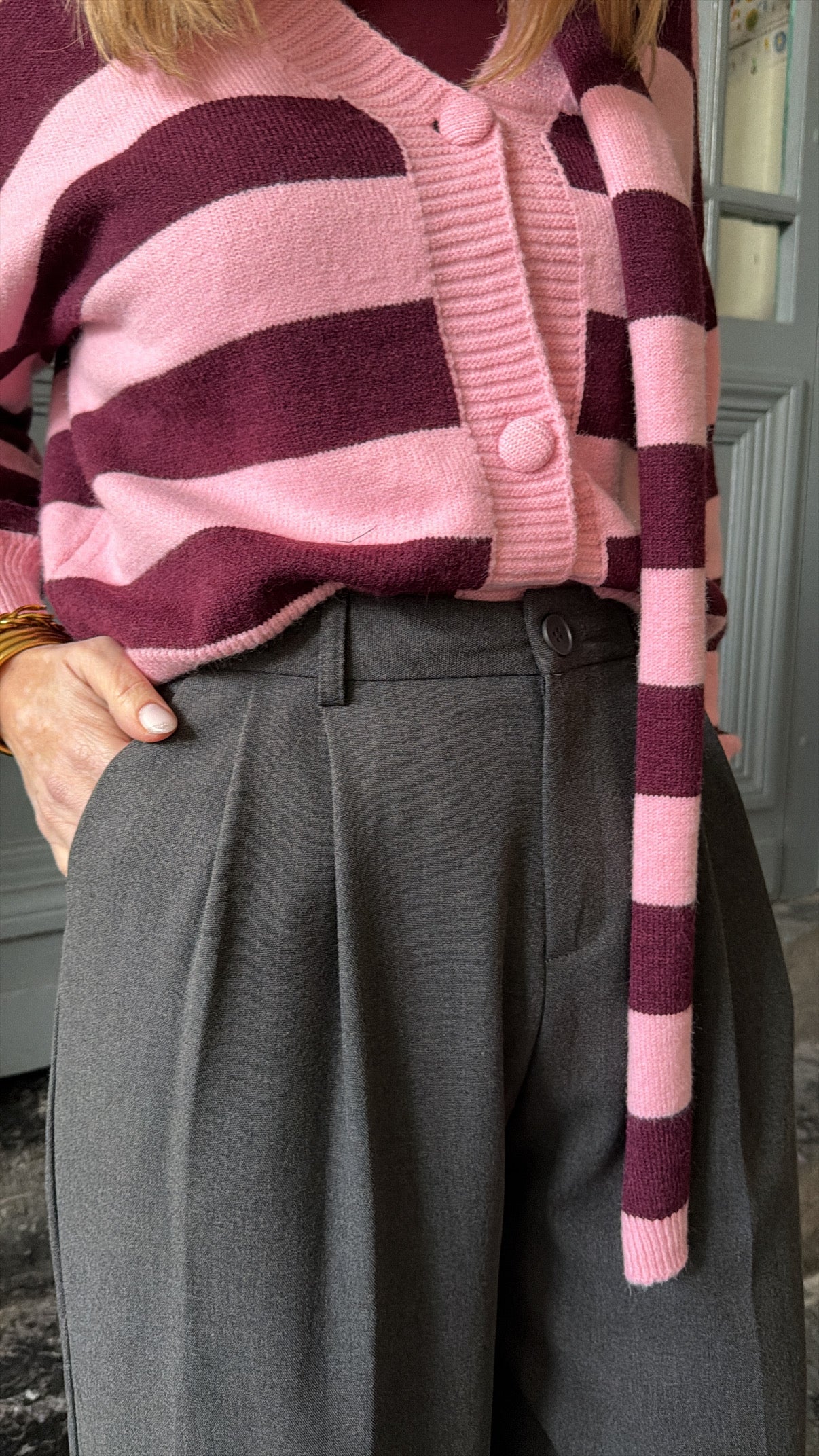 Pantalon coupe classique, taille haute. Le tissu est fluide. Détail pince sur le devant.
