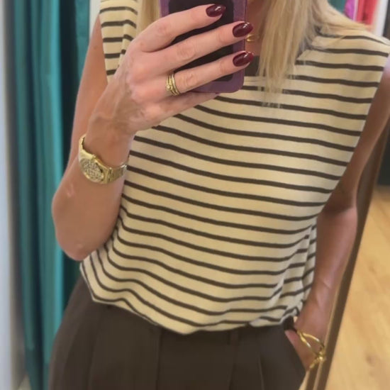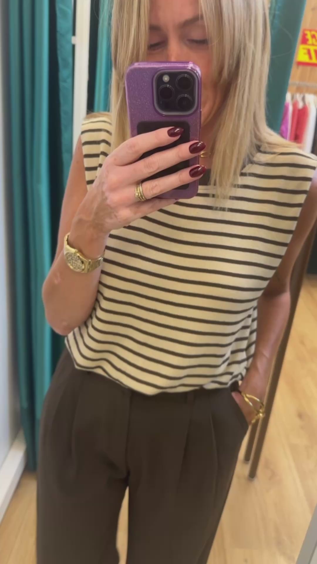 Pantalon coupe classique chocolat avec détail pinces sur le devant. Taille haute.