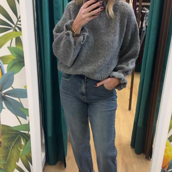 Pull oversize détail col et manches à volant, un mélange de douceur, 38% acrylique, 32% polyamide, 18% de laine, 12% de kid mohair.