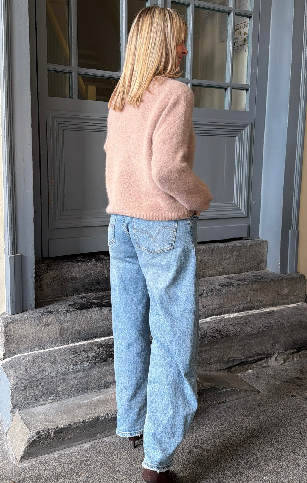 Pull col rond, légerement bateau, avec une maille extrêmement douce.
