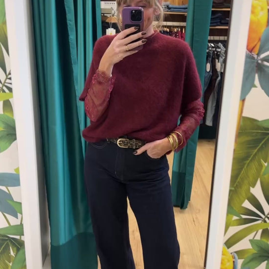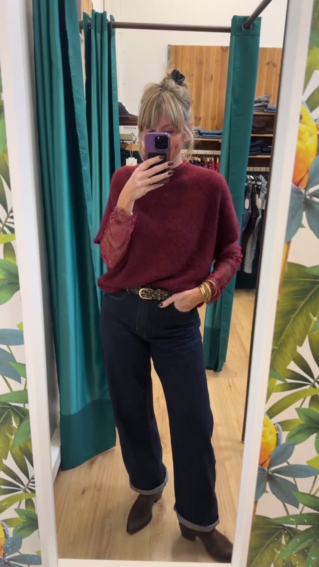 Pull tout doux manches courtes, col rond légèrement montant. La maille est très douce. Coupe oversize. 45% baby alpaga, 40% polyamide, 11% laine et 4% élasthanne.