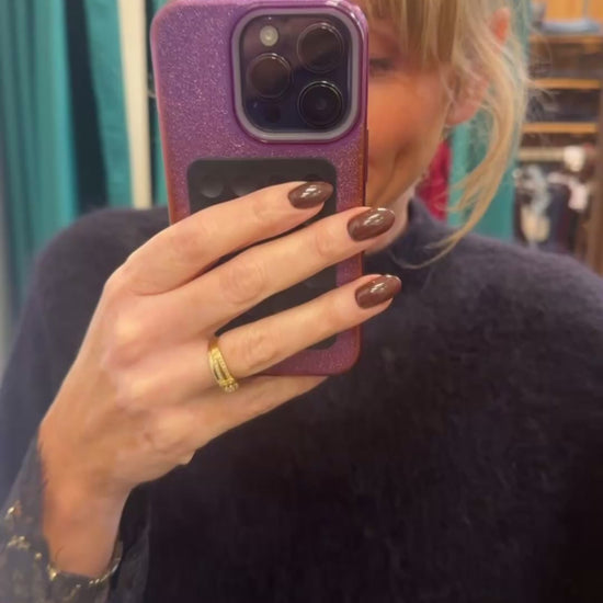 Pull tout doux manches courtes, col rond légèrement montant. La maille est très douce. Coupe oversize. 45% baby alpaga, 40% polyamide, 11% laine et 4% élasthanne.