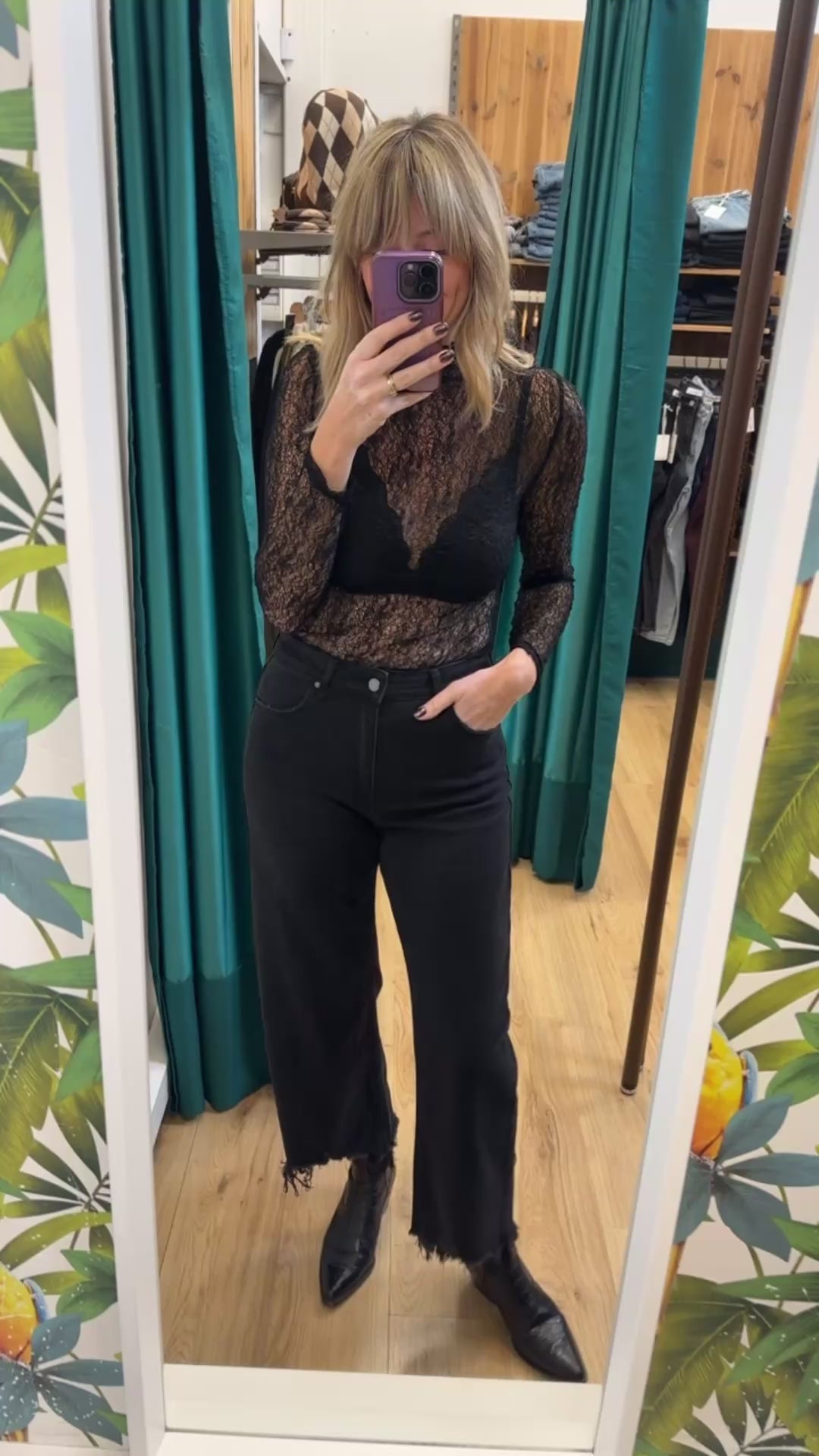 Élégant sous-pull en dentelle fine, parfait pour superposer sous une veste, une chemise ou un pull oversize. Sa matière légère et légèrement transparente apporte une touche raffinée et féminine à toutes vos tenues.