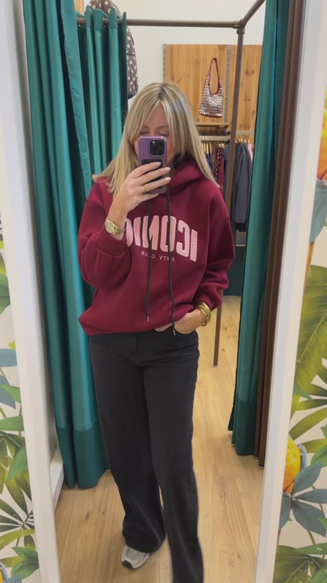 Sweat capuche ICONIC Bordeaux/Rose