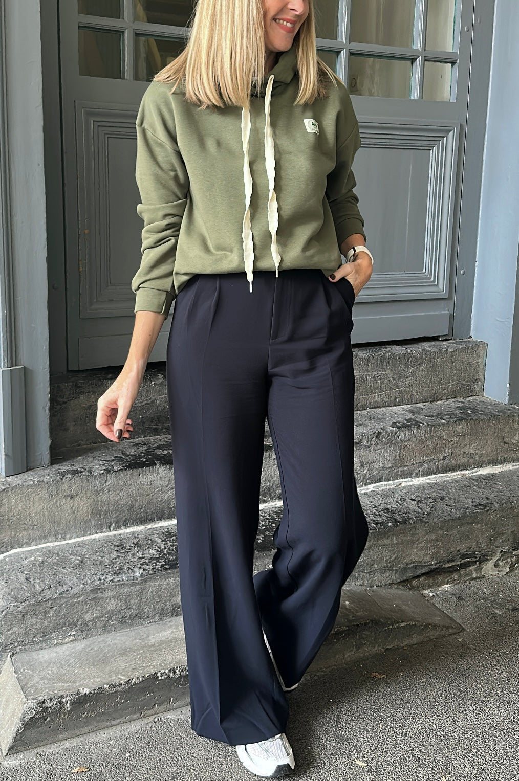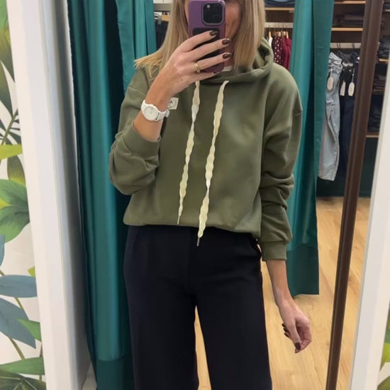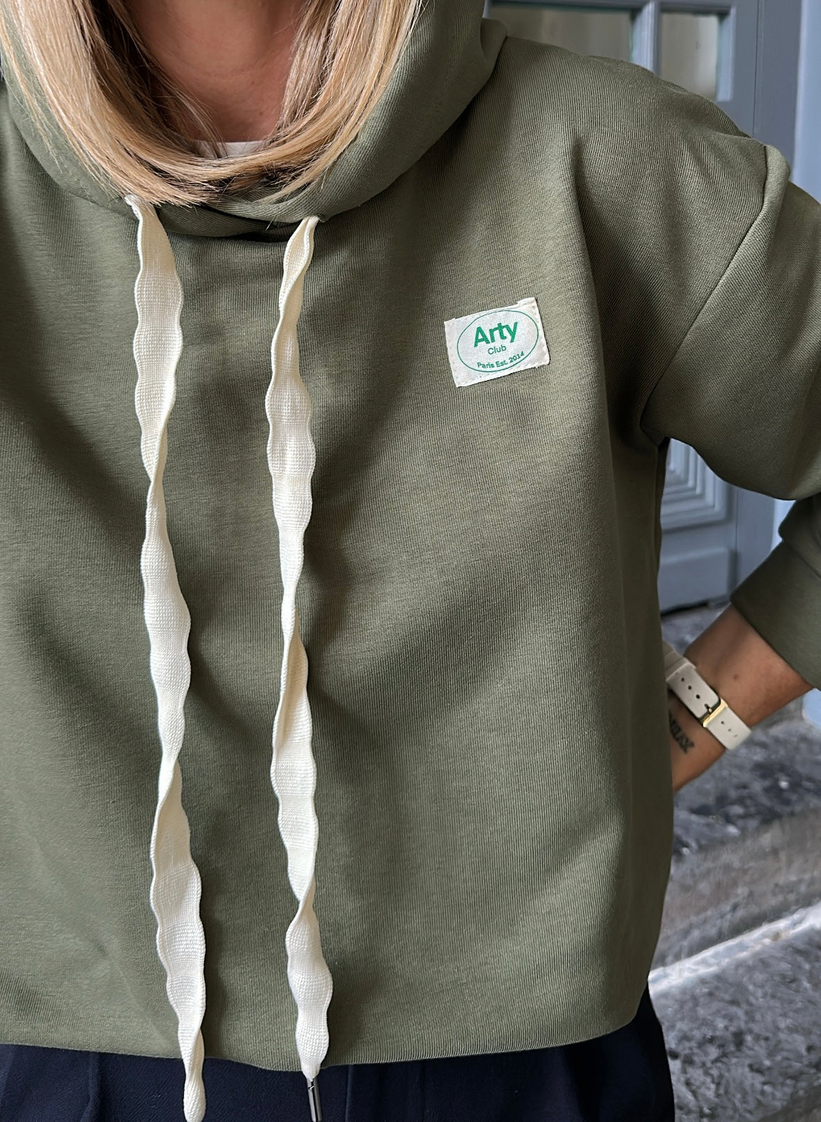 Sweat oversize à capuche avec détail cordon ondulé écru et écusson sur la poitrine.