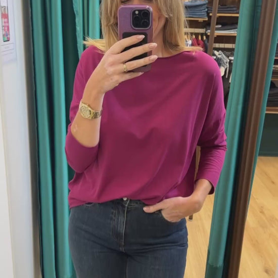 T-shirt oversize en coton seconde peau. Col légèrement bateau. Les bords sont coupés au laser.