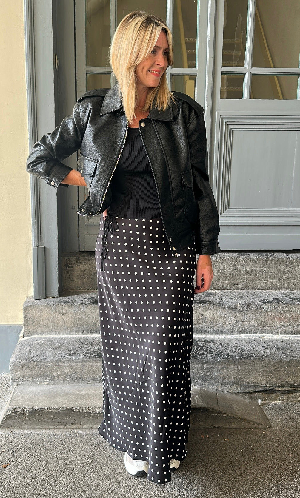 Juliette fait un 38/40 pour 1m74 et porte la taille M/L.