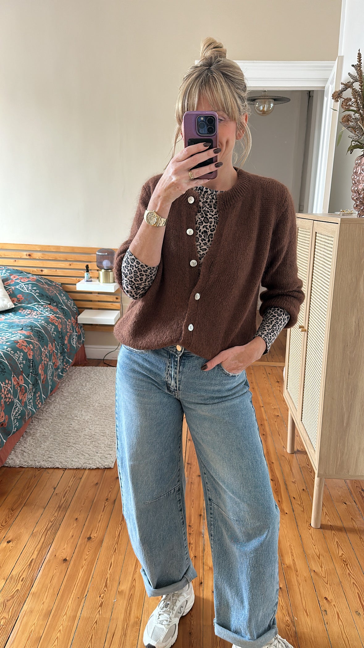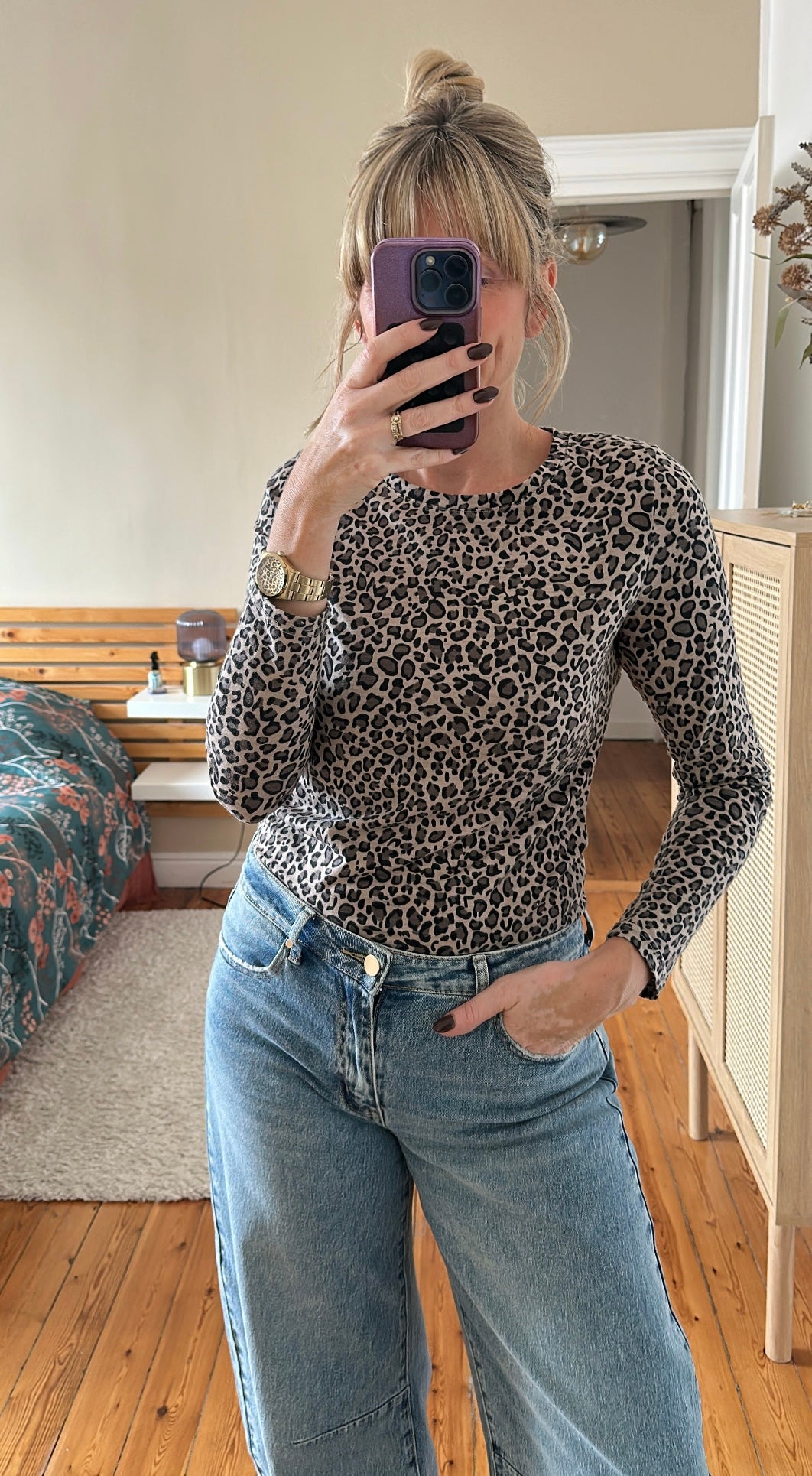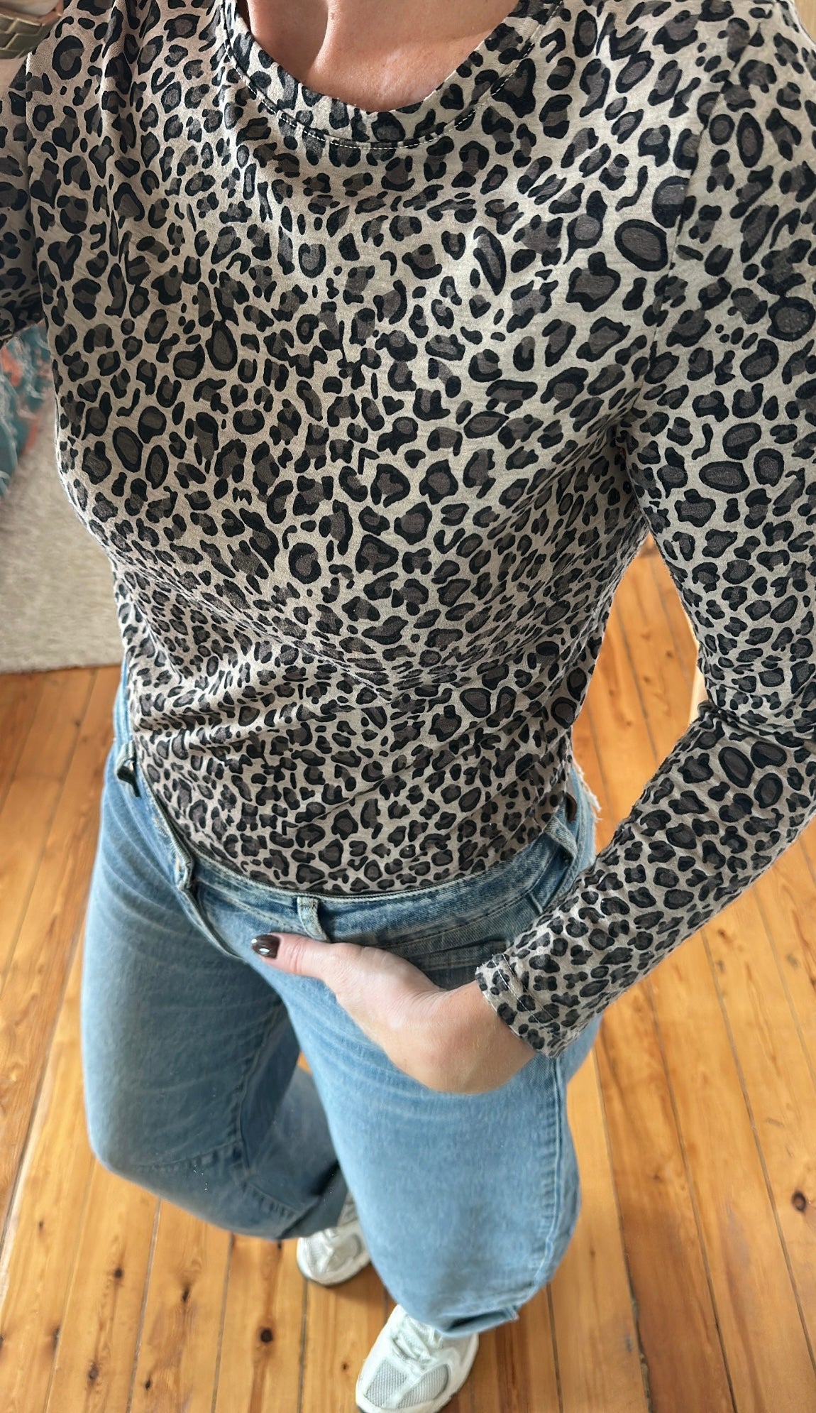 Top moulant longues manches en imprimé léopard, très confort.