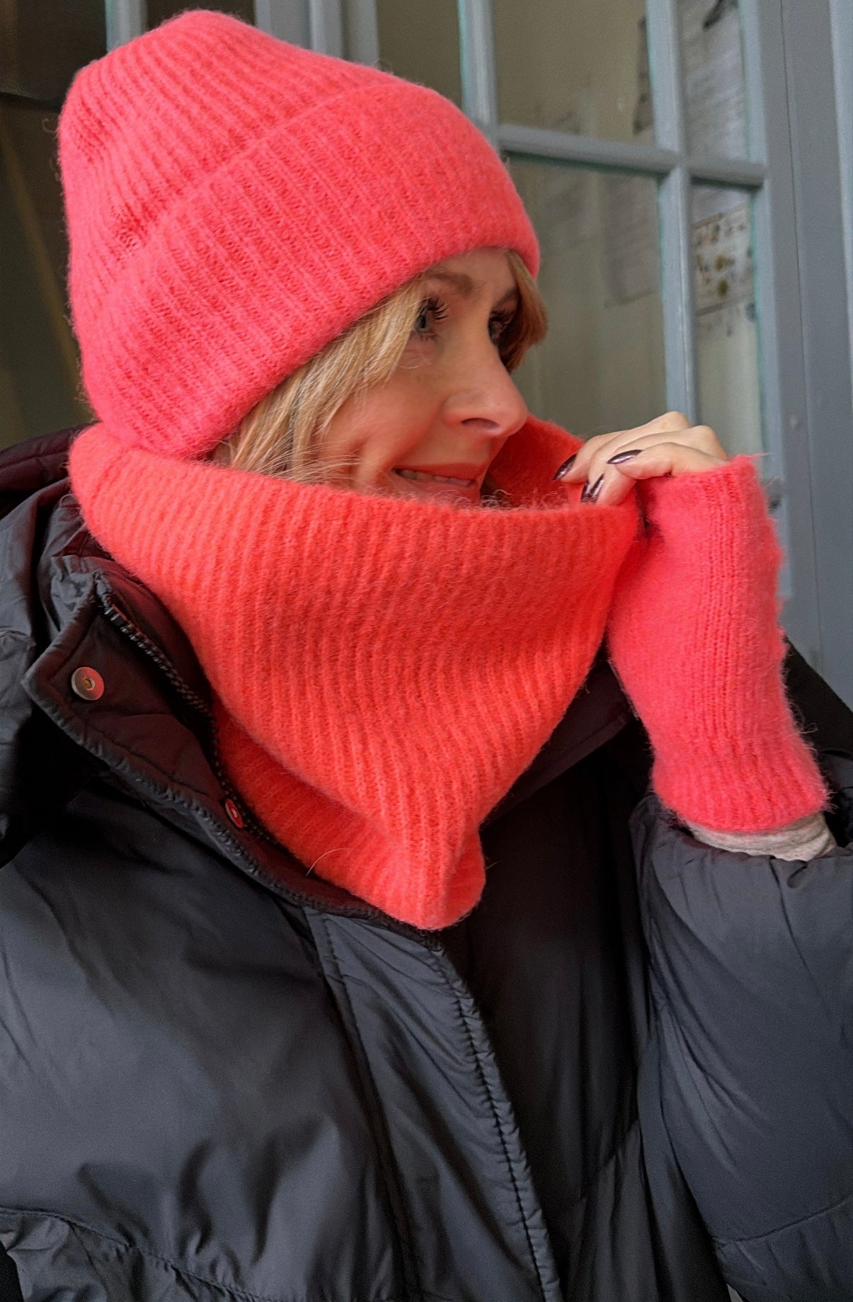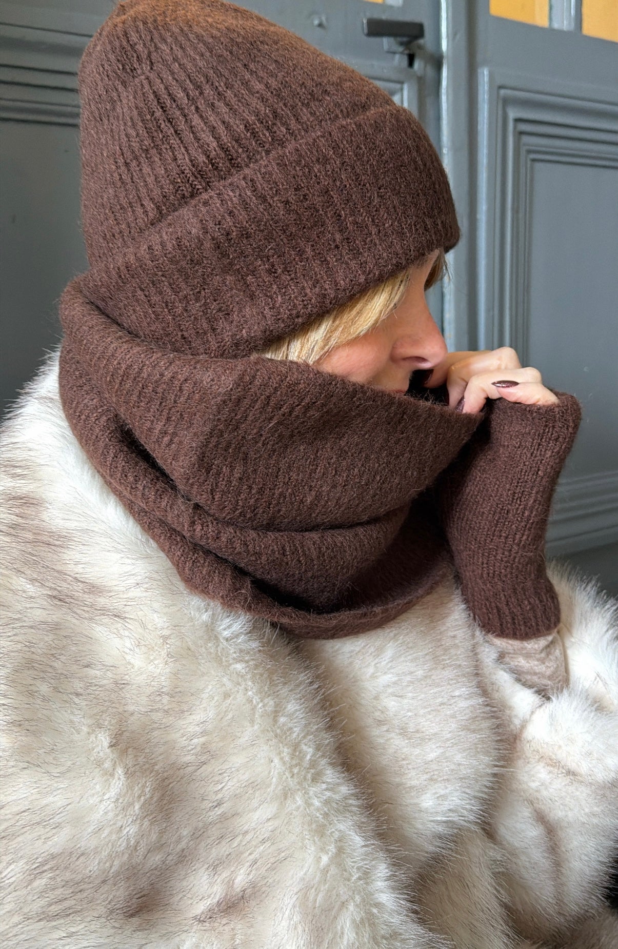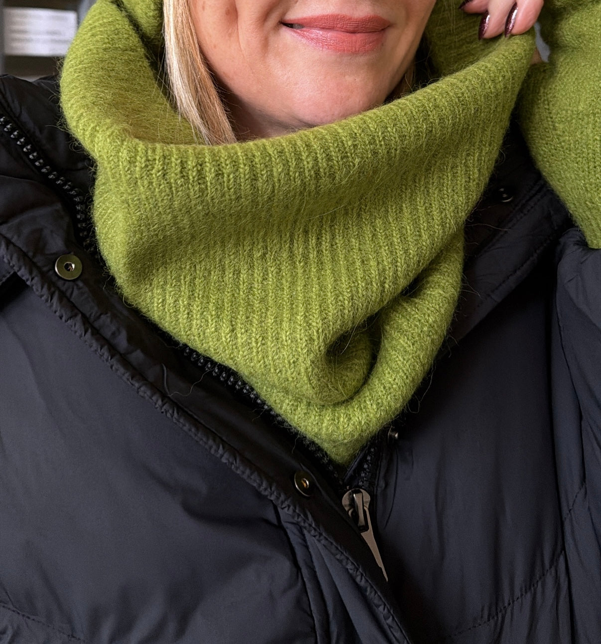 Tour de cou très doux et chaud, 30% baby alpaga, 32% polyamide et 38% acrylique.